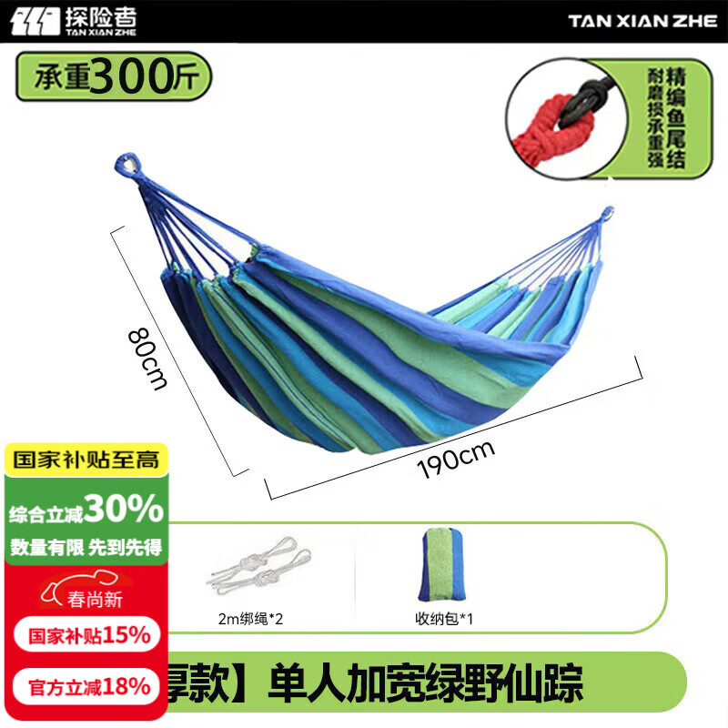探险者(TAN XIAN ZHE)吊床户外秋千室内单人吊床双人吊床加宽加厚帆布秋千宿舍吊床 【加厚款】单人加宽绿野仙踪