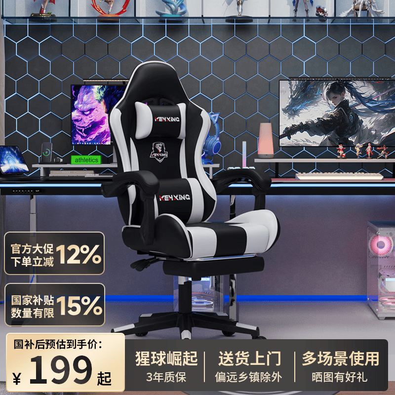 科幻猩电竞椅电脑椅子休闲舒适久坐大学生宿舍家用办公可升降座椅躺椅 暴雪白一代+带搁脚 联动扶手