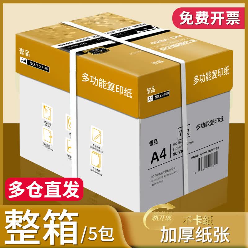 誉品(YUPIN)a4打印纸 70g整箱A4复印纸 80g加厚办公白纸多功能双面打印 70g整箱5包共2500张【金色包装】