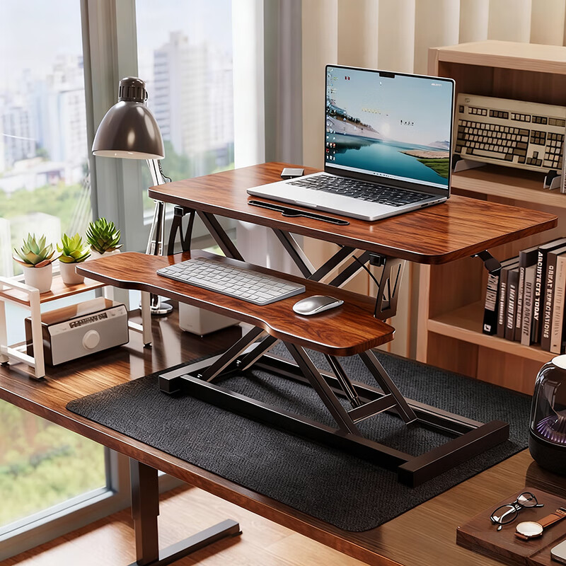 全品屋升降电脑桌升降工作台电脑升降支架台站立式升降办公书桌 无级升降-胡桃色双层65x40cm(小工位首选) 【宽敞品质桌面】