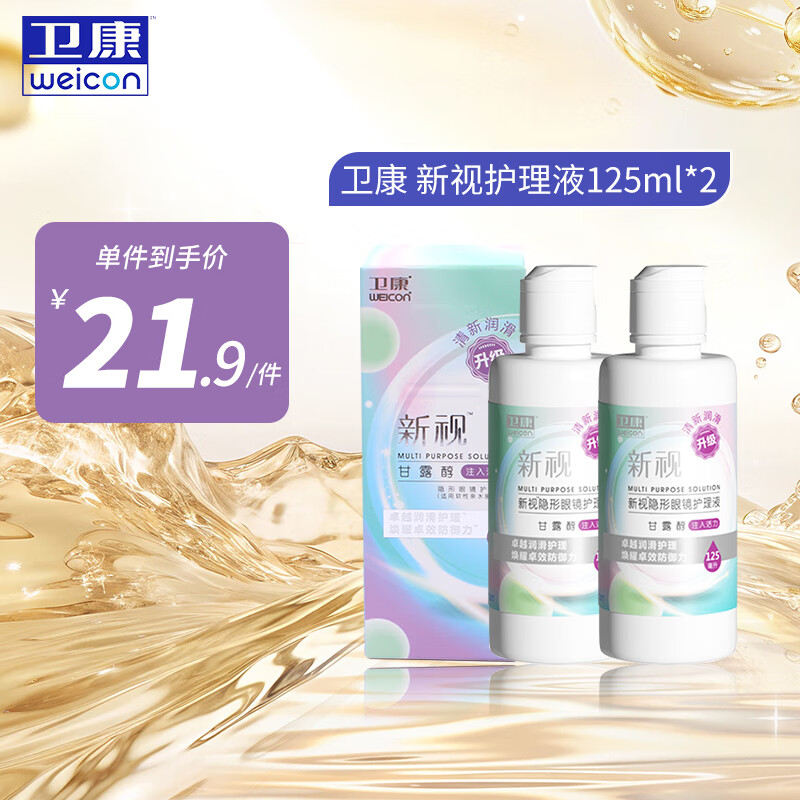 卫康近视隐形眼镜护理液 新视(甘露醇)清洁除蛋白眼药水美瞳通用 【便携旅行装】125ml*2