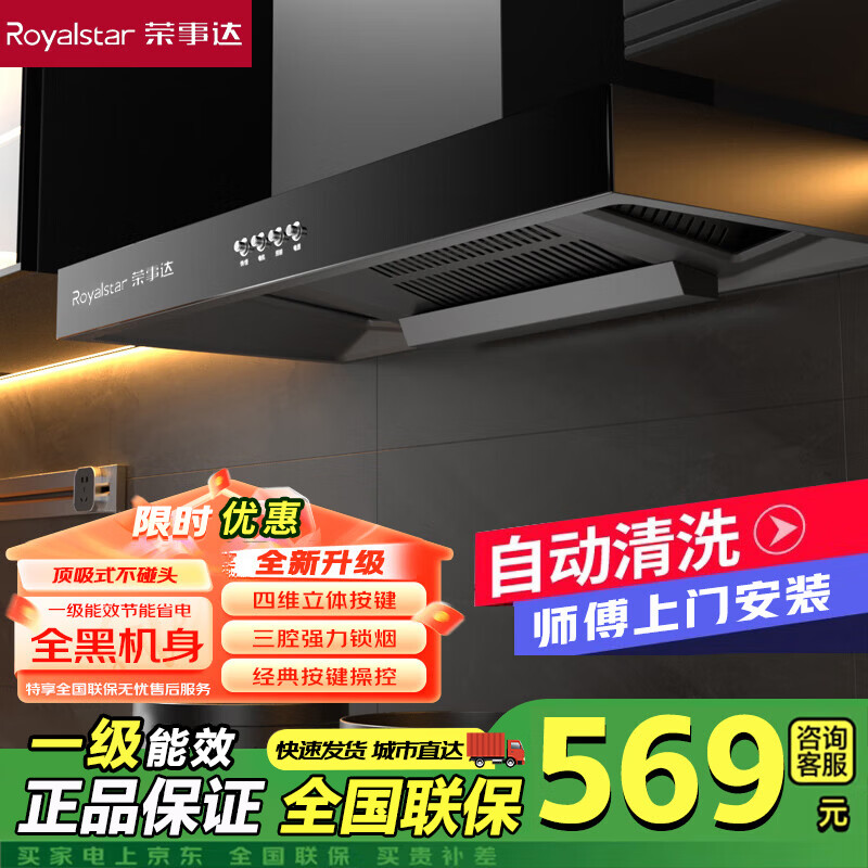 荣事达油烟机家用抽油烟机大吸力顶吸式吸油烟机一级能效欧式出租房烟机燃气灶套装品牌补贴以旧换新 900宽三腔吸烟+按键+巡航增压+上门安装