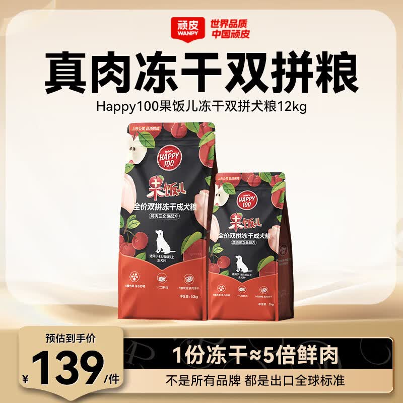 顽皮(Wanpy)果饭儿双拼犬粮添加鸡肉冻干拉布拉多比格宠物食品成犬幼犬专用 【冻干添加】鸡肉+三文鱼口味-12kg