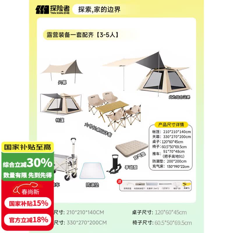 探险者(TAN XIAN ZHE)户外折叠椅露营椅子月亮椅便携折叠桌椅高靠背躺椅小凳子钓鱼椅 【120桌椅】露营装备一套配齐[3-5人]