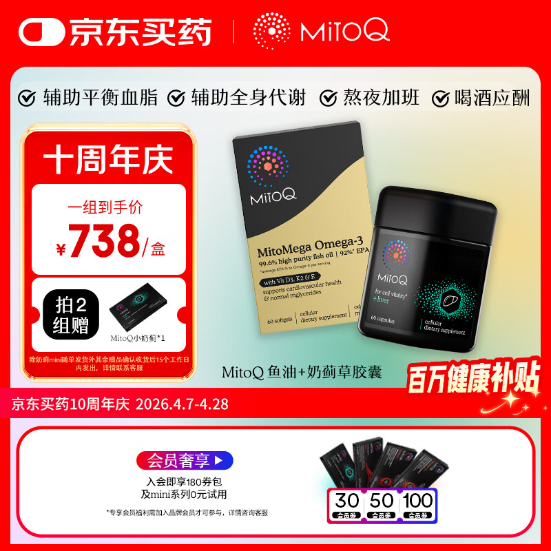 MitoQ奶蓟草护肝胶囊 靶向修复10倍吸收 护肝片水飞蓟熬夜养肝护肝排毒 奶蓟草胶囊60粒+鱼油胶囊60粒