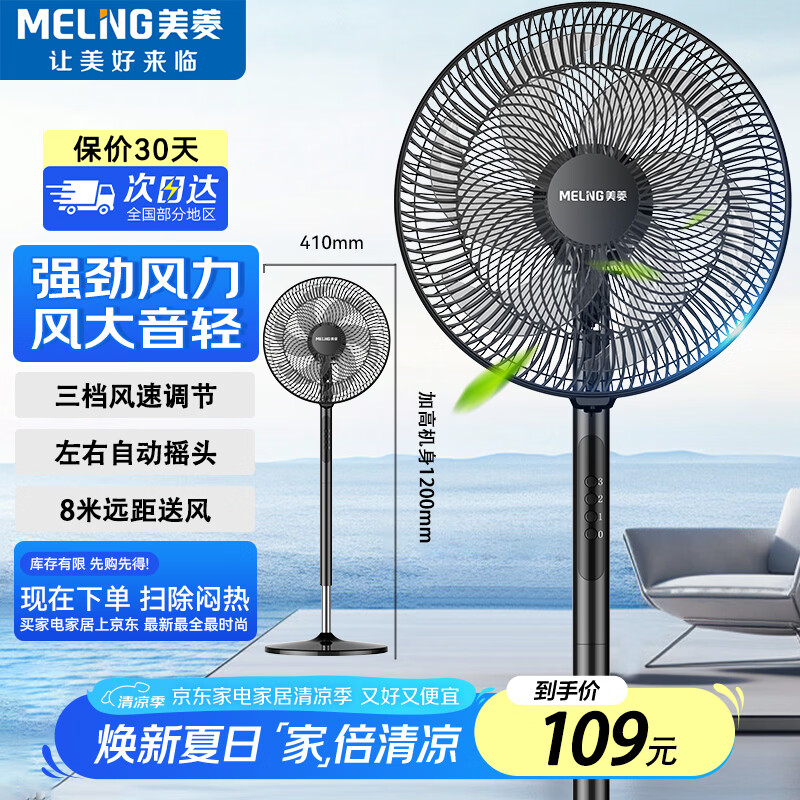 美菱(MeiLing)电风扇落地扇大风量办公室家用可拆洗电扇摇头轻音立式交流定频风扇落地 【强力送风】16英寸6叶机械款