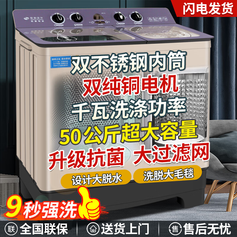 三峡劲霸【纯铜电机】大容量半自动洗衣机家用老式大容量双缸双桶商用酒店宾馆被子毛毯四件套以旧换新 50公斤双钢紫【9秒强洗+滚珠纯铜+防爆脱水】 双缸