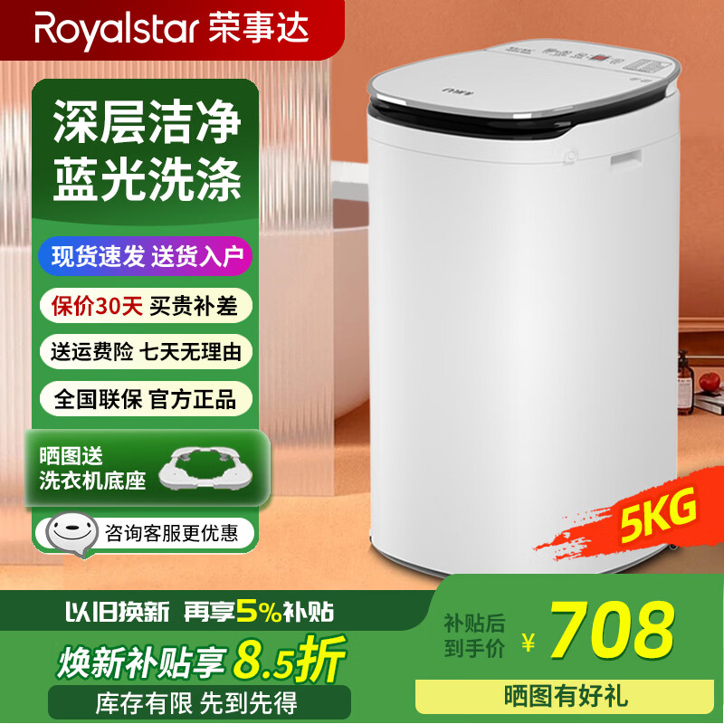 荣事达【高端系列】迷你高温煮洗4kg婴儿洗衣机全自动杀菌蓝光洗脱一体机家用儿童小型3.5公斤宝宝风干 5KG【蓝光洁净+洗脱一体】后触屏款 波轮