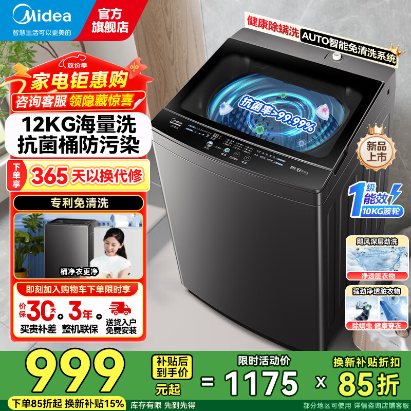 美的(Midea)全自动家用10公斤波轮洗衣机大容量升级一级能效租房送老人水电双宽可选12公斤 以旧换新国家补贴 12公斤【经典款】省水省电L2 波轮