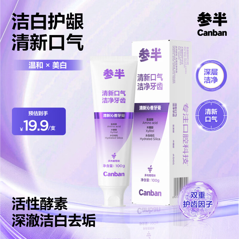 参半清新沁香牙膏酵素洁白去渍清新口气温和清洁 多肉葡萄 100g*1支