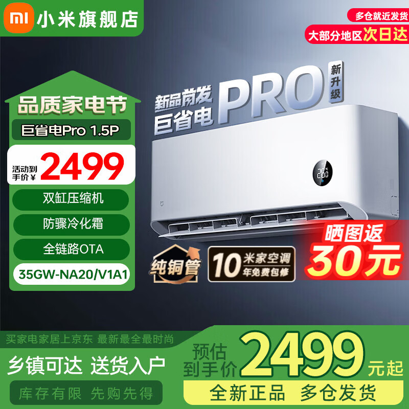 小米(MI)米家新款1.5匹巨省电 双排款 健康风 变频冷暖智能互联自清洁一级能效壁挂式卧室客厅家用空调挂机 1.5匹 超一级能效 25款巨省电pro【 双缸压缩机 】