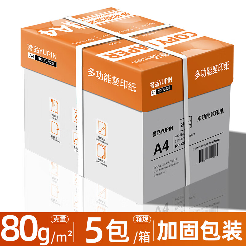 誉品(YUPIN)a4打印纸 70g整箱A4复印纸 80g加厚办公白纸多功能双面打印 80g整箱5包共2500张【橙色包装】