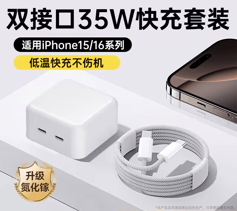 Viken【直营正品】适用苹果17/16/15充电器头40W/45W正品套装iPhone17/16/15proMax/pro电源适配器线 【双接口极速充电】35W充电头+USB-C线1米 安全认证不伤机