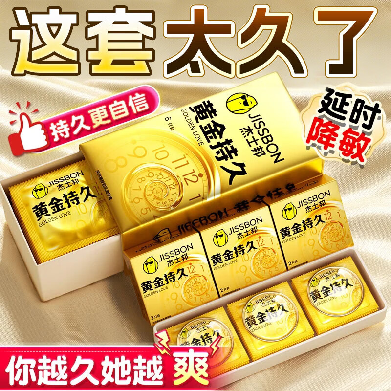 杰士邦延时避孕套安全套黄金超凡持久超薄0.01隐形裸入狼牙套套成人用品 【杰士邦旗下更持久】24只:纯黄金持久6+超薄18