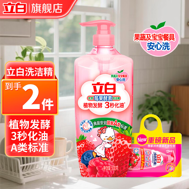 立白洗洁精白桃APG洗洁精洗碗液宝宝餐具果蔬洗洁剂高效去油除味家用 莓果洗洁精+冷水精