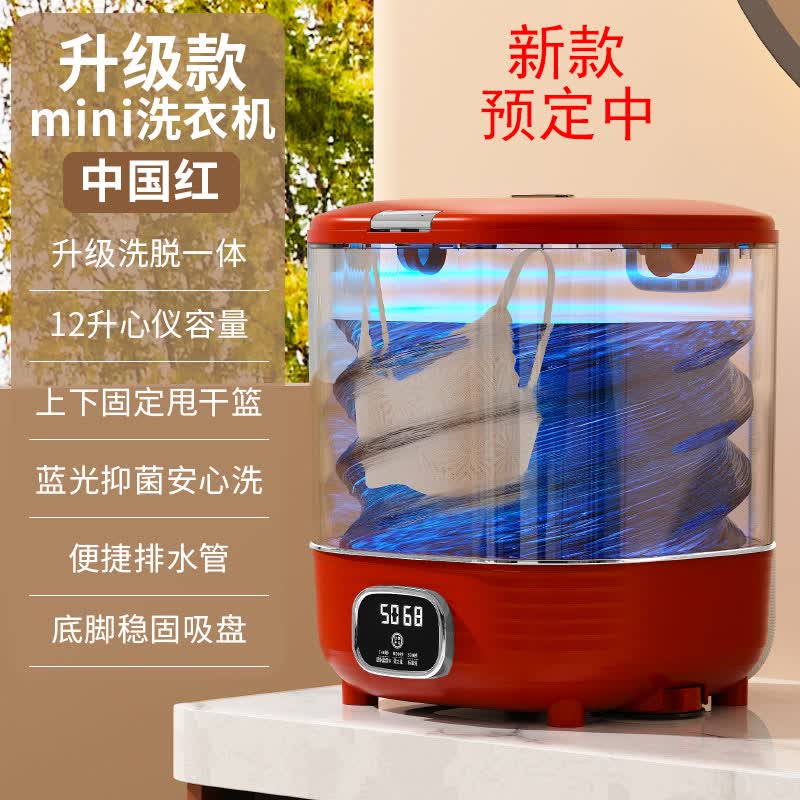 扬子集团半全自动迷你洗衣机小型洗脱一体 内衣内裤洗衣机学生宿舍 婴儿洗袜子机带脱水租房半自动 轻奢透明12L中国红|洗脱一体+抑菌除螨+悬空沥水