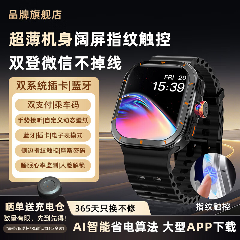 XAA华强北顶配S10Ultra蜂窝版5G全网通插卡智能电话手表微信聊天GPS定位学生初高中生青少年6-18岁 领先黑 指纹解锁+自定义壁纸+超凡响应+APP下载 5G全网通+超薄机身+手机级芯片丝滑流畅