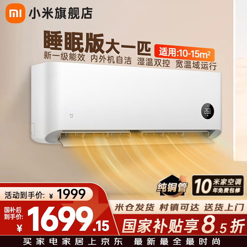 小米米家空调 1.5匹 巨省电 睡眠款 新一级能效 变频冷暖 壁挂式 挂机家用卧室 KFR-35GW/S1A1 巨省电 一级能效 1.5匹 【快速制冷/热 高性价比】