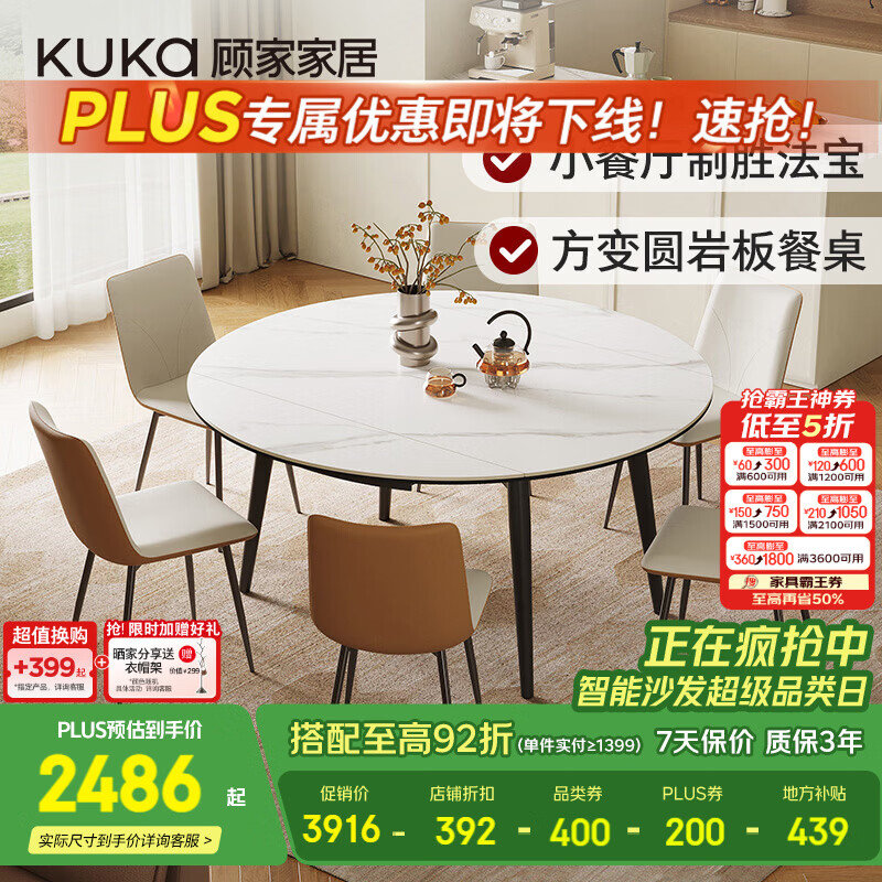 顾家家居简约岩板餐桌饭桌子家用可伸缩全托小户型餐桌椅子全套DS7209哑光 【雪山石哑光】1.5M餐台+暖贝棕椅*6
