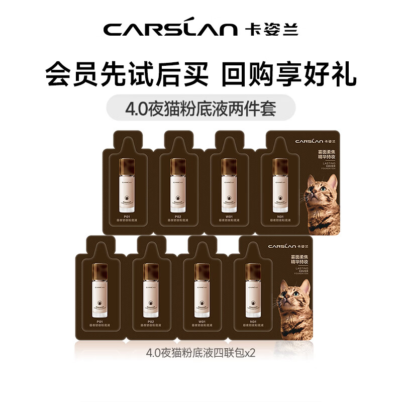 卡姿兰(Carslan)双猫粉底液遮瑕控油bb霜持久不易脱妆不卡粉奶夜混猫生日礼物女友 4.0夜猫粉底液四联包*2