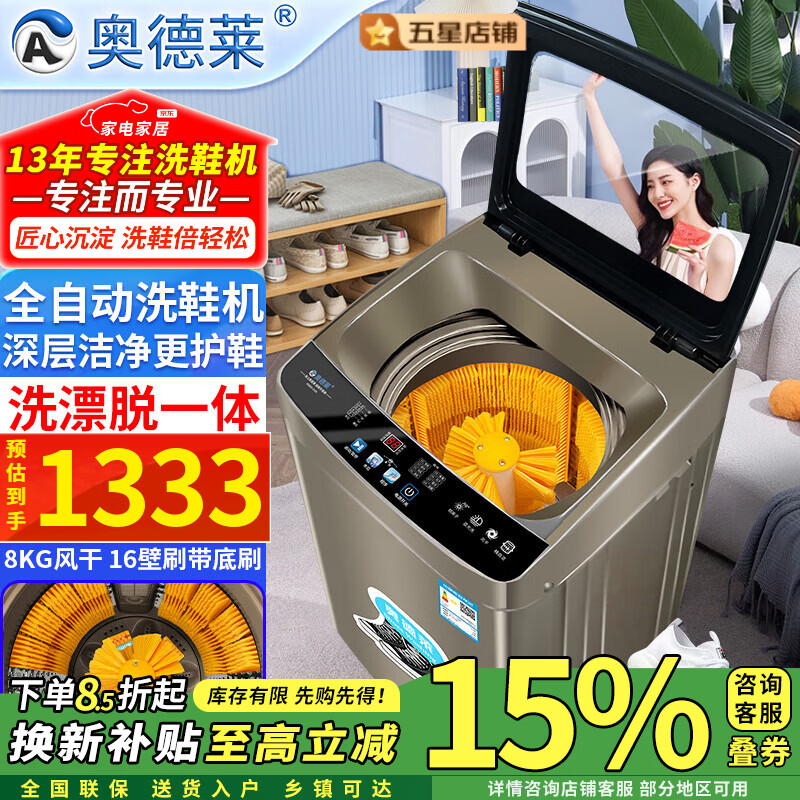 奥德莱(AOD)【换新补贴15%】洗鞋机全自动洗脱一体家用风干烘干全自动刷鞋机滚筒洗鞋子擦鞋器洗鞋神器一体机 8KG全自动家用风干升级版16壁刷+底刷咖啡色波轮
