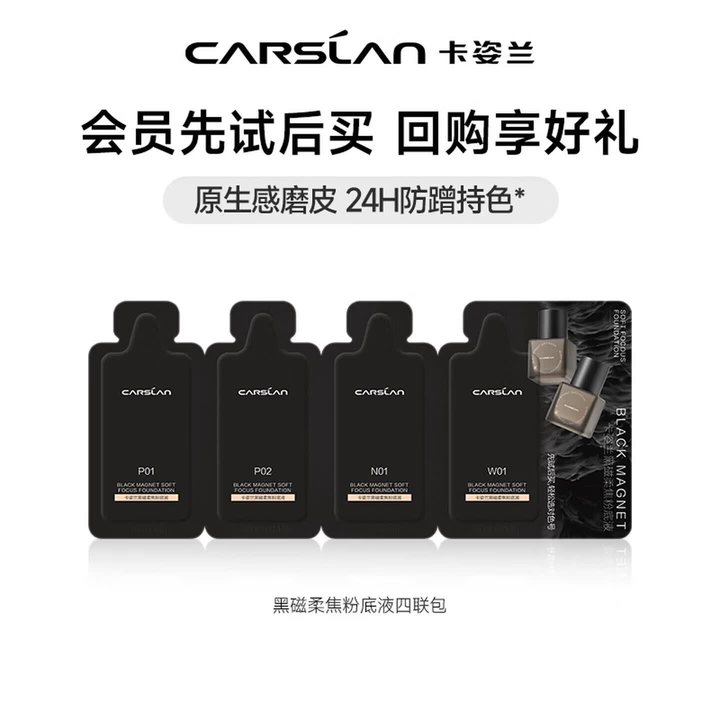 卡姿兰(Carslan)黑磁粉底液遮瑕自然防水汗持妆控油BB霜抗暗沉化妆品生日礼物女友 黑磁粉底液(轻润版)四联包