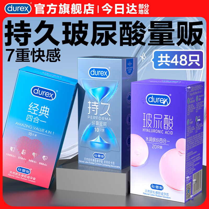 杜蕾斯(durex)延时避孕套男专用持久防早泄敏感安全套 苯佐卡因延时三合一套套 【7种情趣】持久缤纷组合48只