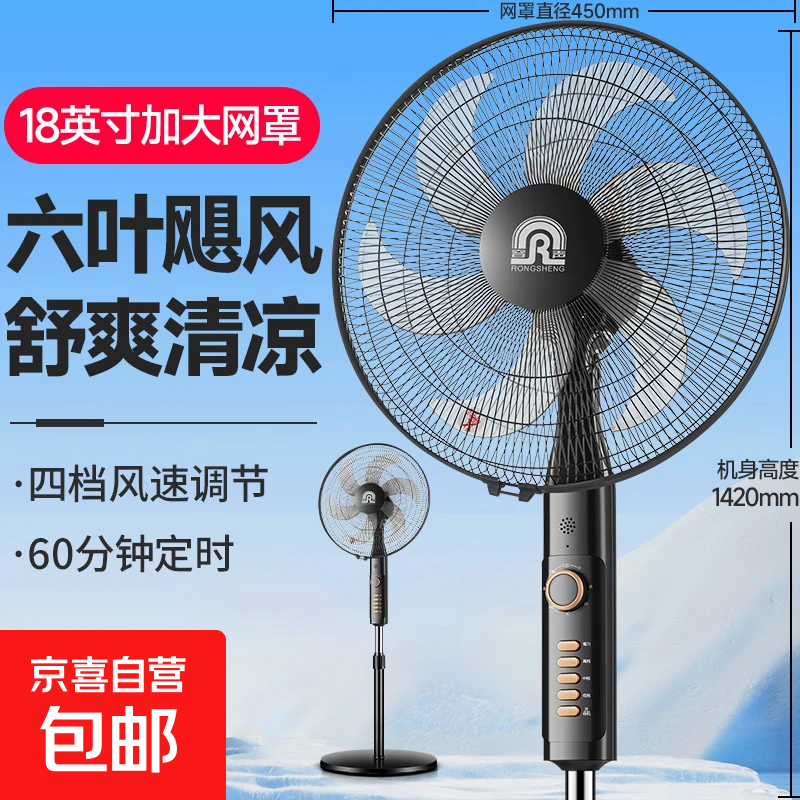 容声电风扇家用落地扇可摇头电扇大风力制冷卧室办公室宿舍大风量风扇可伸缩家用扇 18英寸【升级六叶】大风量四档强劲风机械款