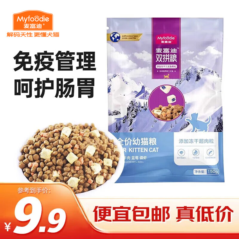 麦富迪 冻干猫粮 超肉粒冻干双拼粮(冻干三文鱼) 幼猫试吃包150g