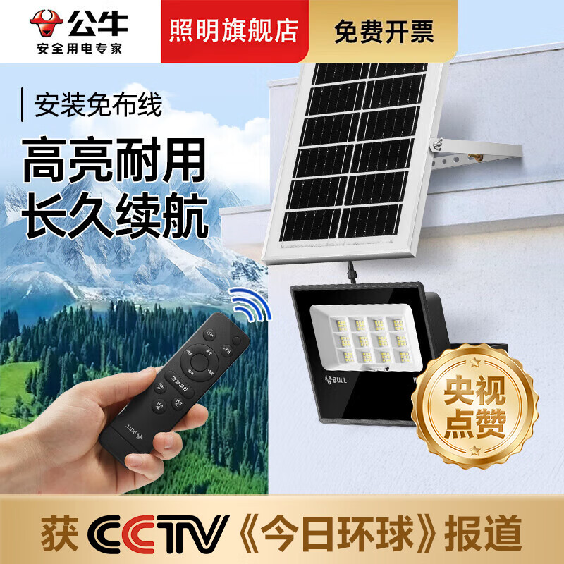 公牛(BULL)太阳能户外照明灯新款大功率庭院灯农村用天黑自动亮防水led路灯 聚光款/80W型/白光/照明80m²