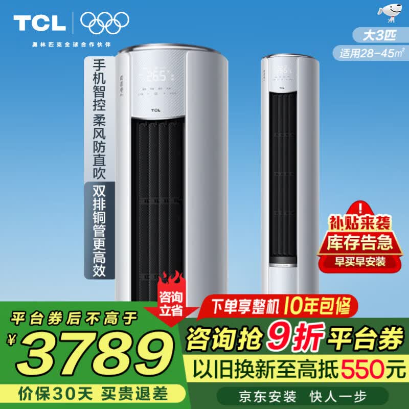 TCL空调柜机大3匹/2匹节能变频冷暖新能效母婴柔风 高温自清洁大风量除湿圆柱立柜式客厅空调柜机 大3匹 一级能效智能柔风真省电pro