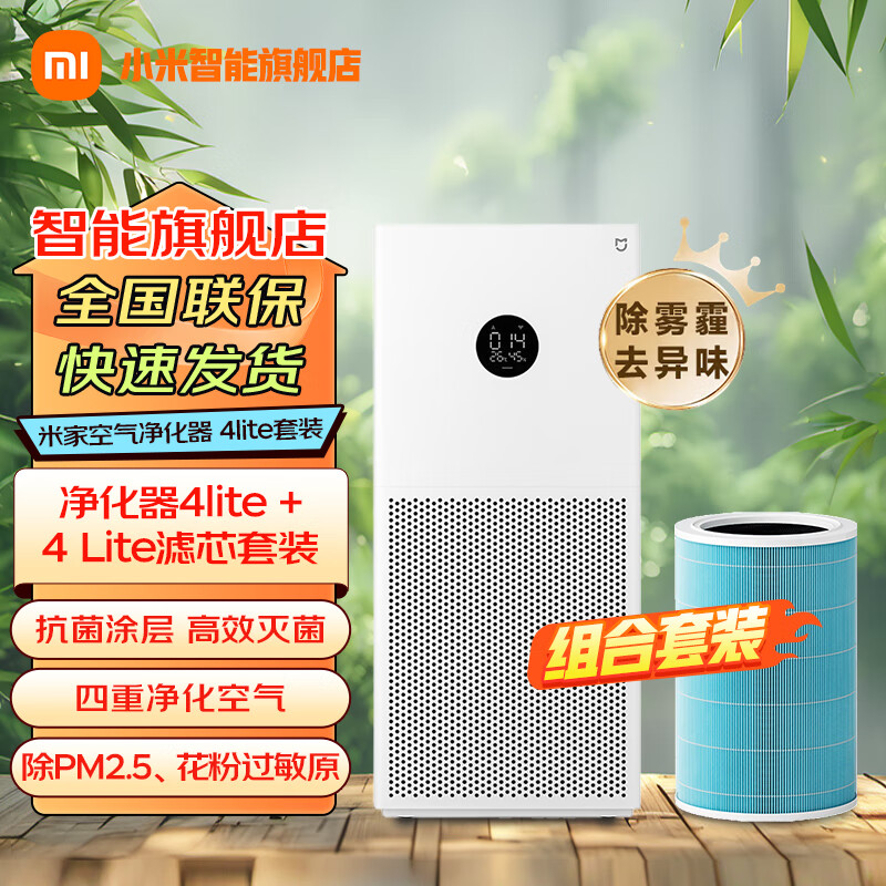 米家小米空气净化器4lite 家用除甲醛除异味PM2.5轻音设计LED显示屏智能控制小巧不占地七夕节礼物推荐 米家空气净化器4lite+原装滤芯
