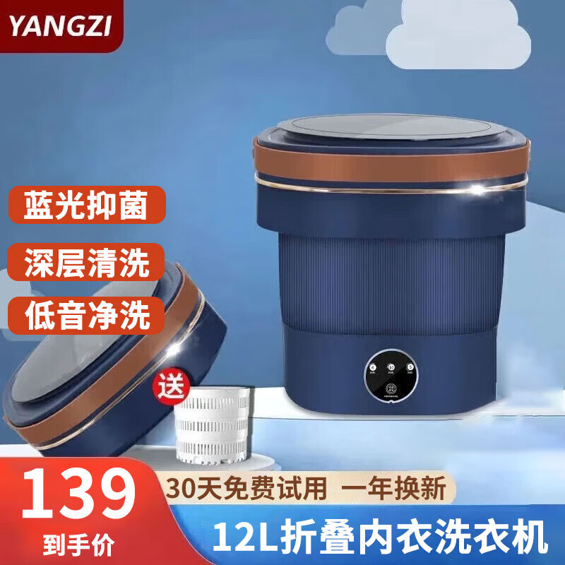 扬子集团半全自动迷你洗衣机小型洗脱一体 内衣内裤洗衣机学生宿舍 婴儿洗袜子机带脱水租房半自动 折叠款12L蓝【蓝光+CLE深度清洁+低音净洗】