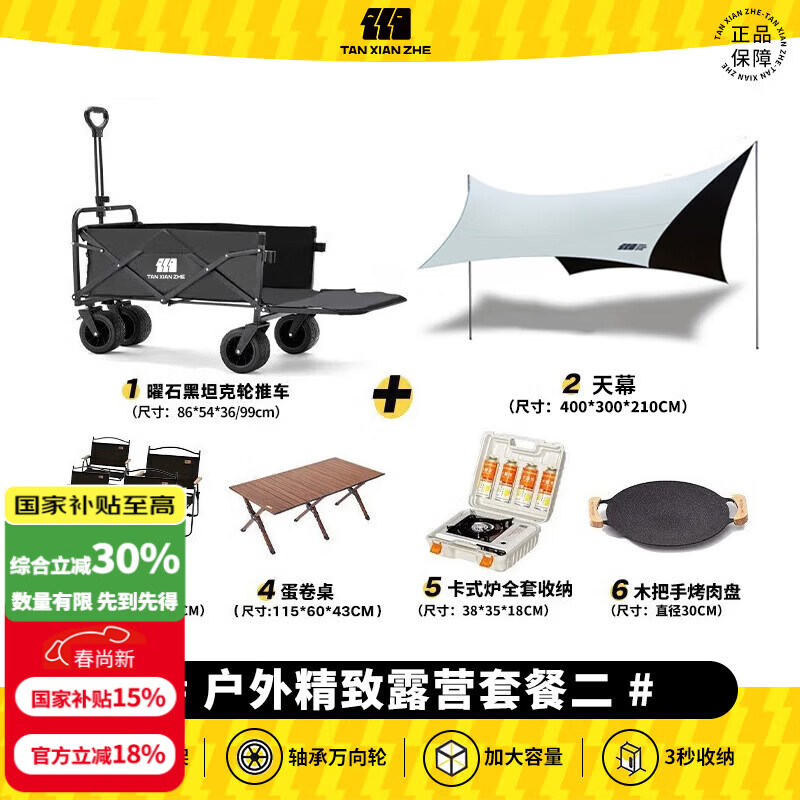 探险者露营车折叠推车户外露营儿童小推车营地车拉年货小拖车聚拢型推车 350L 户外精致露营套餐二