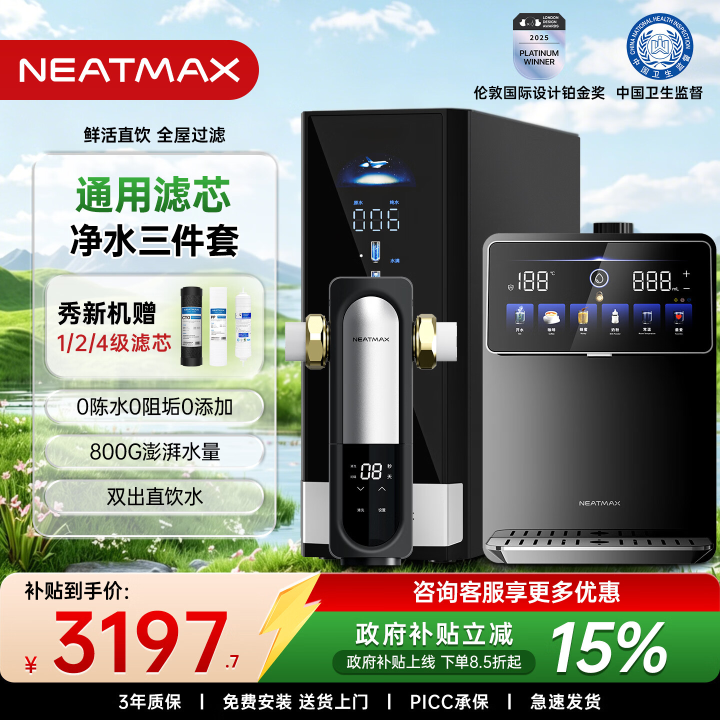 NEATMAX通用滤芯净水器0陈水0阻垢剂0添加陶氏膜厨下直饮纯水机RO反渗透双出水净饮机800G大通量NERO-Q800 8T前置+Q800+管线机【陶氏RO膜】