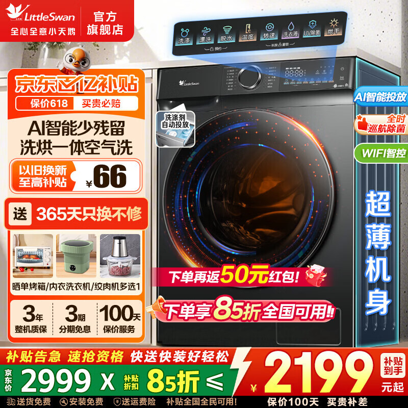 小天鹅(LittleSwan)滚筒洗衣机 水魔方家用大容量全自动洗脱/洗烘一体烘干冷水洗变频除菌超薄纯平全嵌 智投 家电补贴 【10公斤868P】AI智投 干湿除毛洗 洗烘一体
