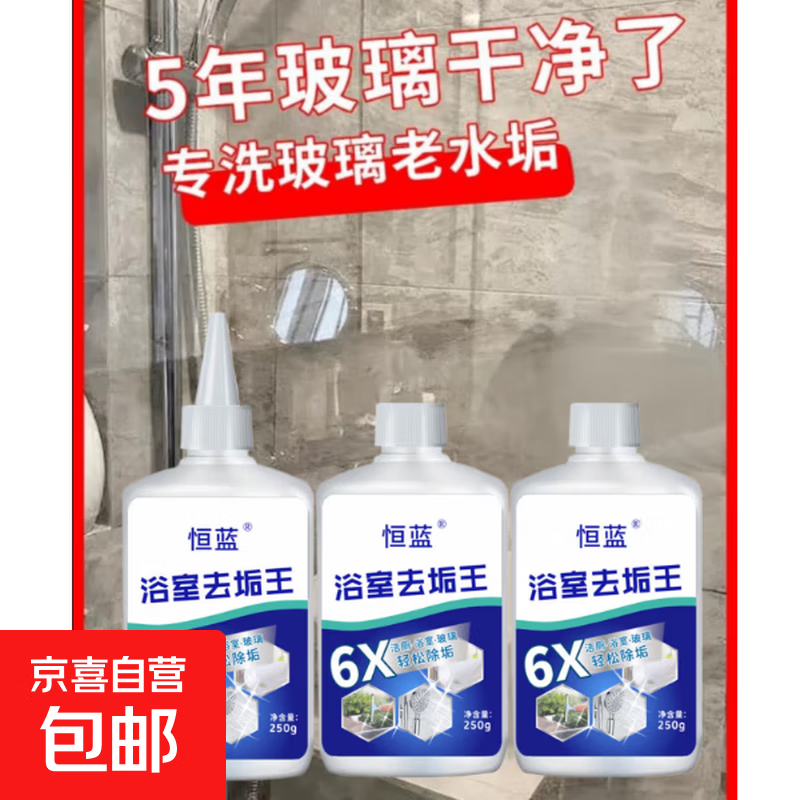 恒蓝浴室瓷砖除垢王玻璃除水垢水龙头洗手盆有效去污多用途清洁 250g*3瓶1尖嘴+【手套+魔术擦】