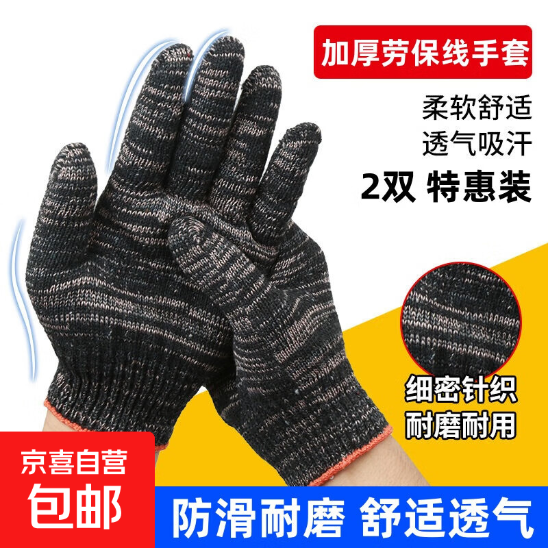 户外运动尼龙线手套劳保手套加厚劳保耐磨工作防滑白棉纱工地蓝边 劳保手套*2双【特惠】