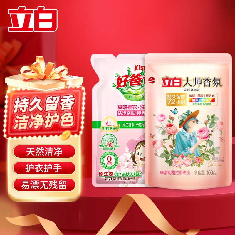 立白大师香氛洗衣液持久留香洁净护色炫彩柔顺玫瑰香家用超值套装 【尝鲜2件】大师液 100g*1袋 +樱花液100g
