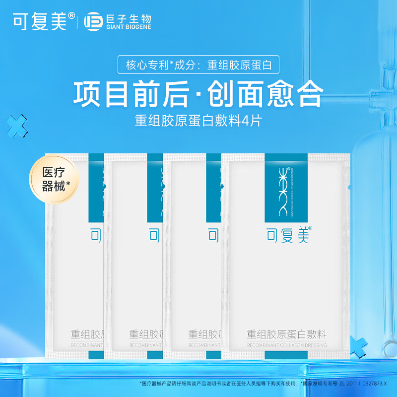 可复美重组胶原蛋白敷料椭圆型 激光子术后创面愈合 敏感肌肤皮炎症痤疮 椭圆敷料4片