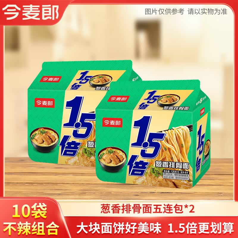 今麦郎方便面1.5倍番茄牛肉红烧牛肉味泡面大分量面饼袋装速食食品 【10袋】葱香排骨面