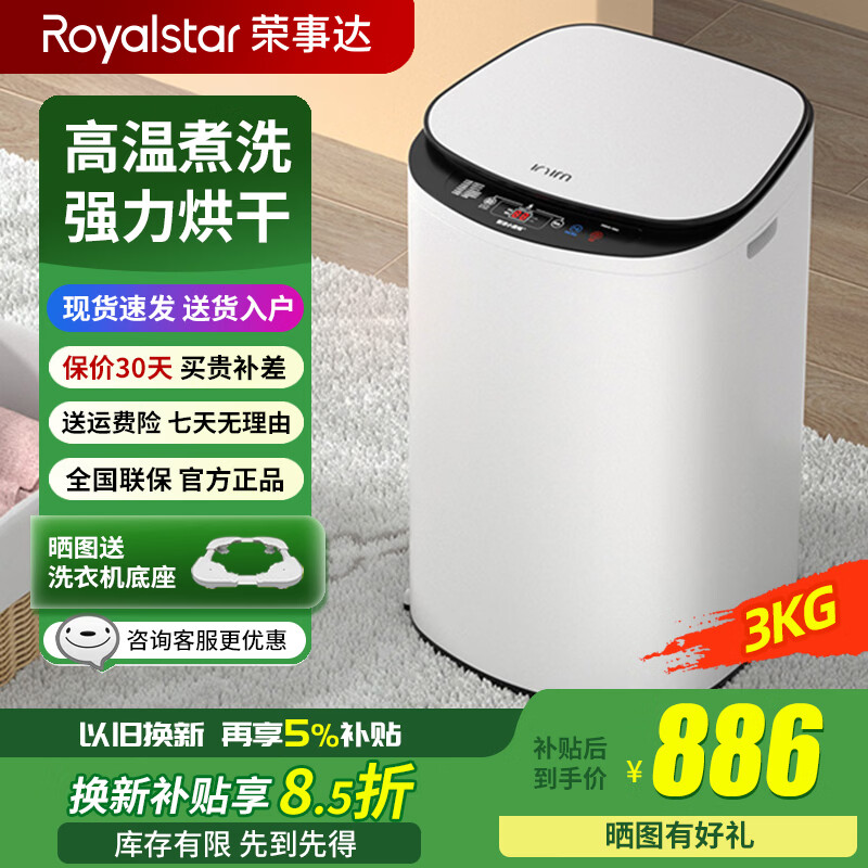 荣事达【高端系列】迷你高温煮洗4kg婴儿洗衣机全自动杀菌蓝光洗脱一体机家用儿童小型3.5公斤宝宝风干 3KG白【高温煮洗+强力热烘干】热烘除螨 波轮