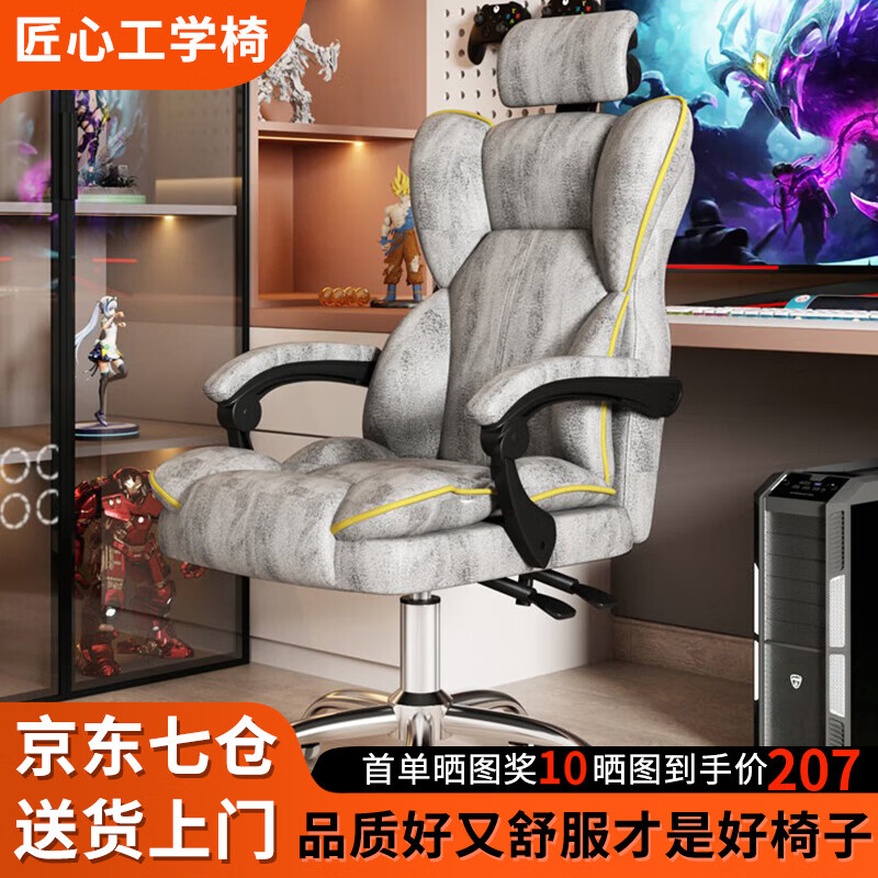 奥伦福特 电脑椅办公椅子电竞椅家用人体工学椅老板椅主播靠背椅皮革转椅 创意工学椅-灰纹【升级科技布】