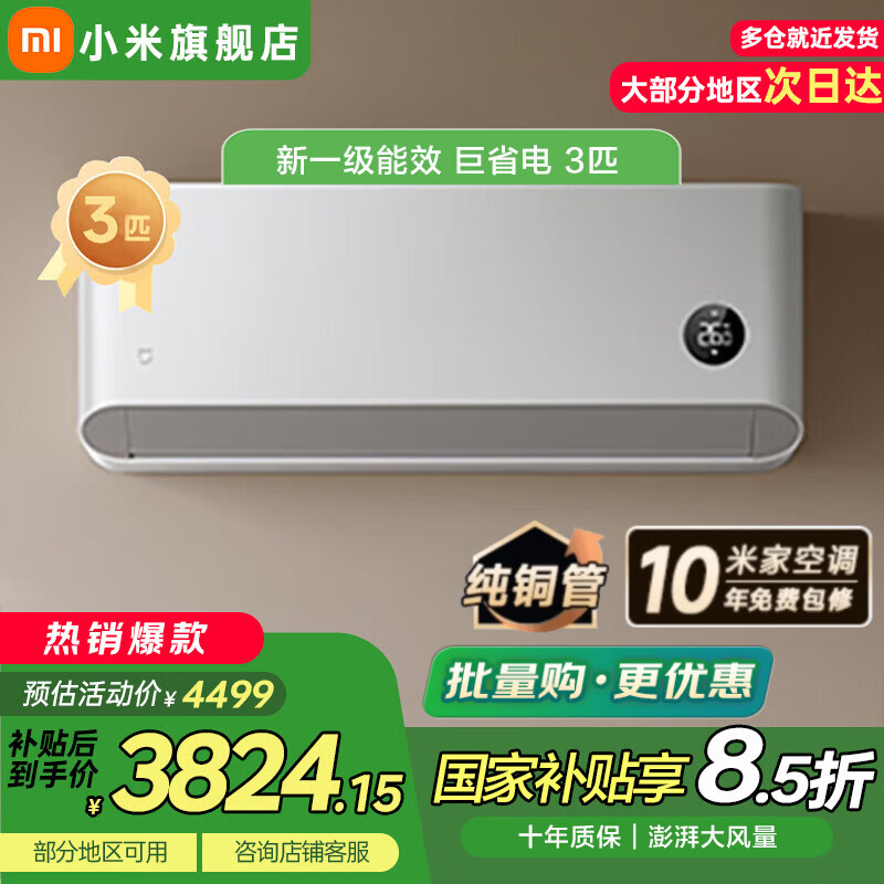小米(MI)空调米家2匹/3匹巨省电Pro 立式柜机 大风口柔风新风自然风快速制冷暖变频家用低噪智能互联自清洁 3匹 一级能效 巨省电【速冷速热 大挂机】
