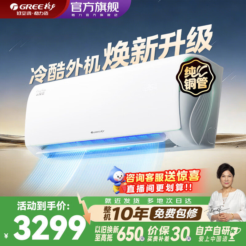 格力(GREE)空调1.5匹云锦PRO三代升级款新一级能效变频省电冷暖智能WIFI壁挂卧室挂机家用官方旗舰国家补贴 云锦III 1.5匹 智能WIFI 冷酷外机 660大风量