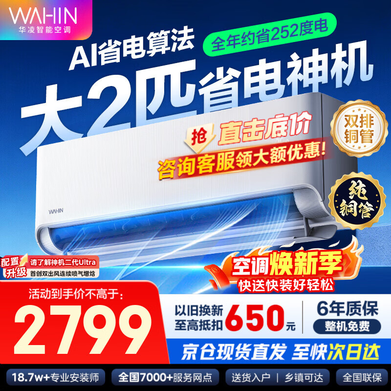 华凌空调 超省电MAX神机挂机 超一级能效大1.5匹 2匹变频冷暖 空调扇 以旧换新家电 变频省电挂机 2匹 一级能效 省电神机