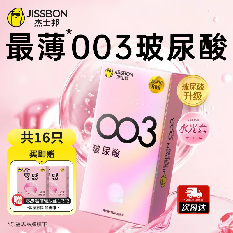杰士邦延时避孕套安全套黄金超凡持久超薄0.01隐形裸入狼牙套套成人用品 【爆款钜惠16只】003玻尿酸1+超薄玻尿酸15