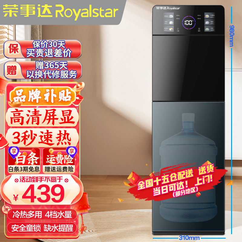 荣事达(Royalstar) 饮水机下置式家用立式快速加热下置水桶饮水器 五星推荐【3秒速热 升级LED智能触控屏】 即热制冷型