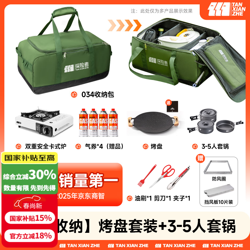 探险者(TAN XIAN ZHE)户外卡式炉露营炉具便携式野外煮火锅炉子卡磁炉全套带锅野餐套装 升级【全包收纳】烤盘+3-5人套锅