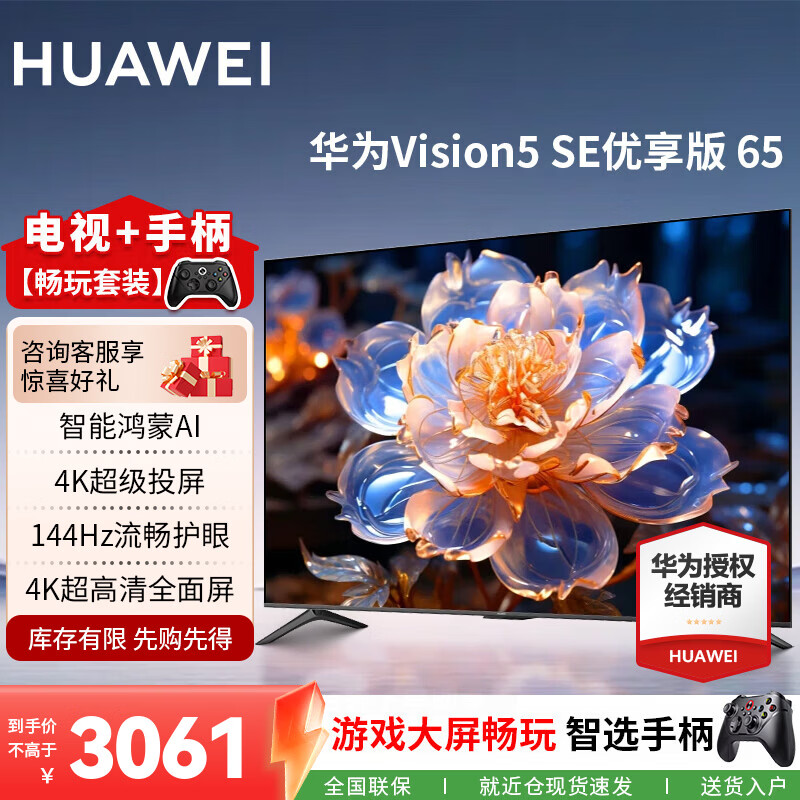 华为电视智慧屏Vision 5SE 优享版 65英寸 144Hz 鸿蒙AI语音 4K超高清超薄全面屏智能液晶平板电视机 65英寸 【游戏畅玩套装】5SE 65优享版+游戏手柄